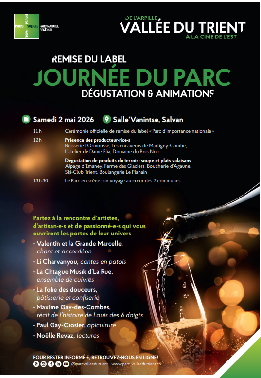 Le samedi 2 mai prochain, le Parc Naturel Régional vous convie à sa journée, à Salvan. Au programme, remise du label "Parc d'importance nationale", dégustation et animations.