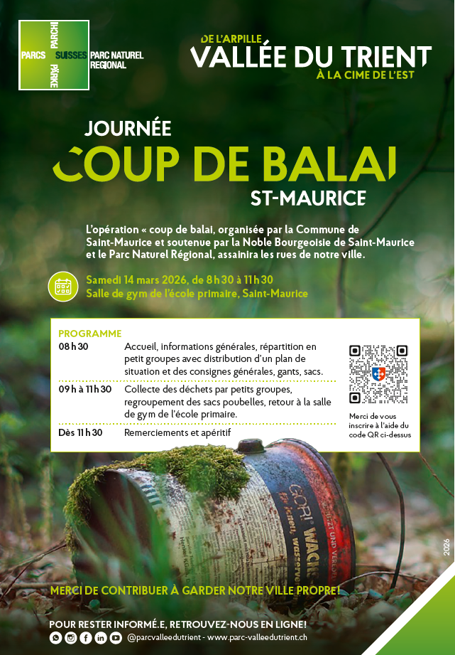 L’opération « coup de balai » organisée par la Commune de Saint-Maurice, en collaboration avec la Noble Bourgeoisie de Saint-Maurice et le Parc Naturel Régional aura lieu le 14 mars 2026.